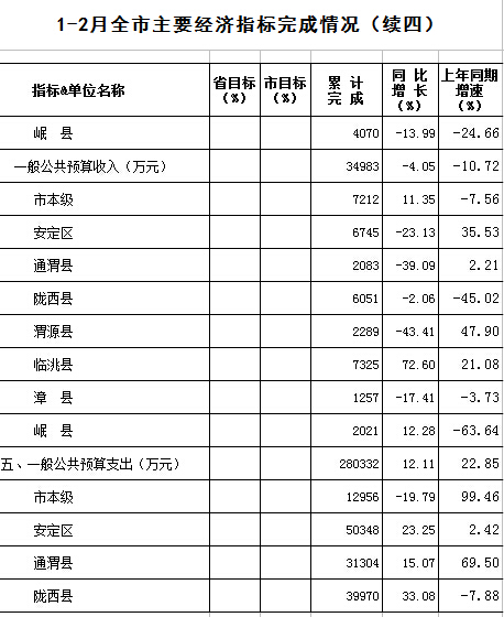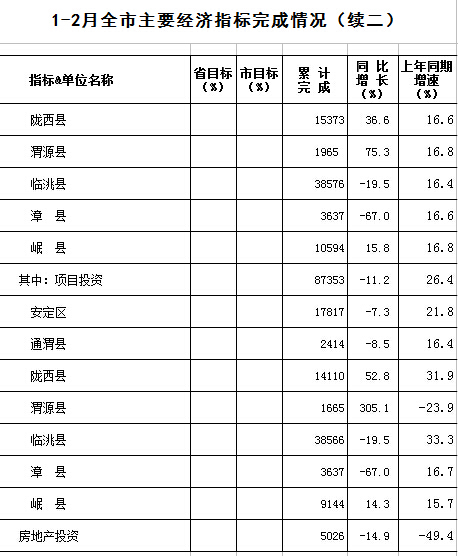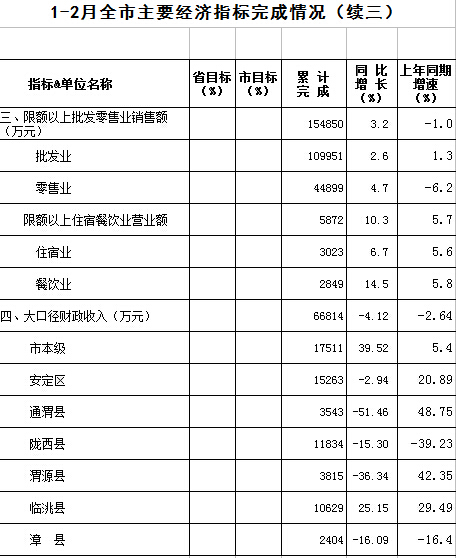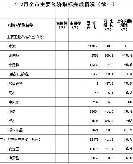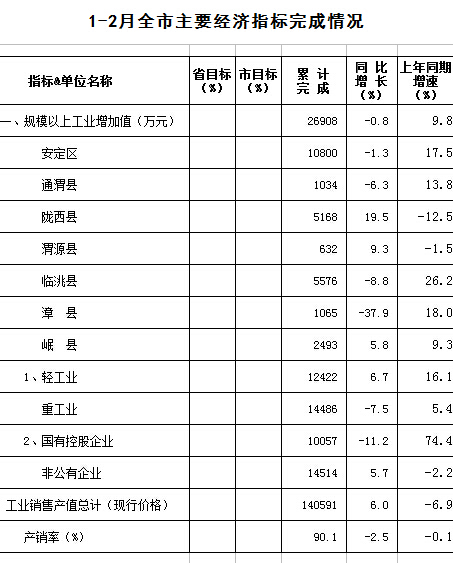 2016年1-2月定西统计月报