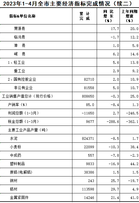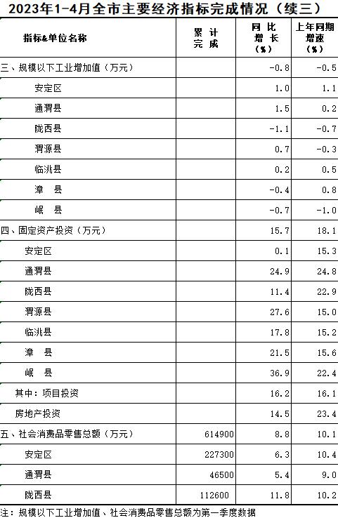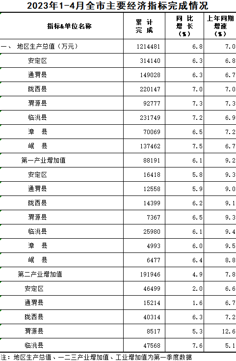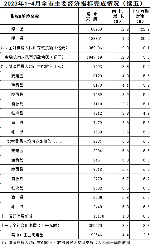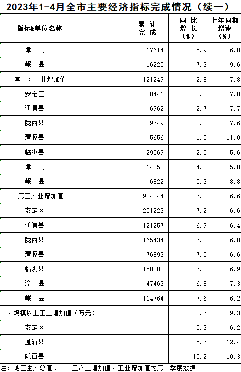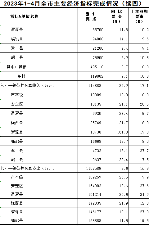 2023年1-4月定西统计月报