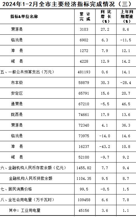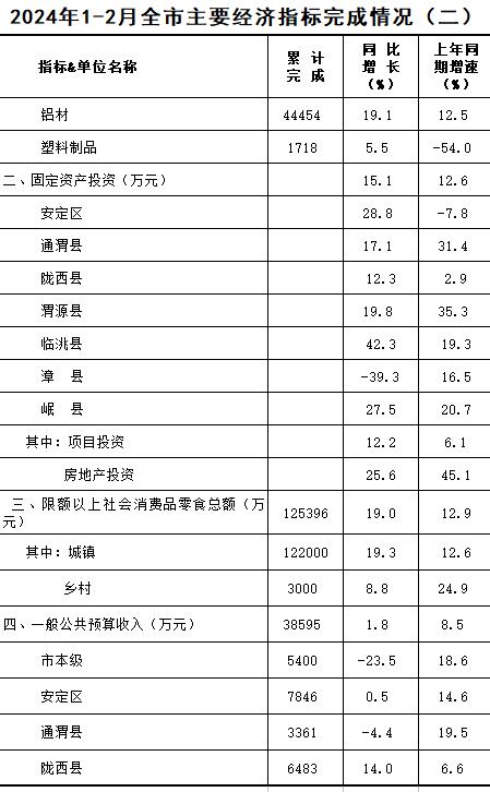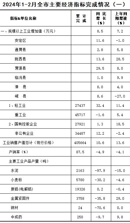2024年1-2月定西统计月报