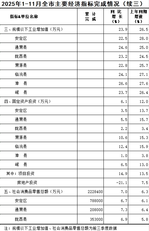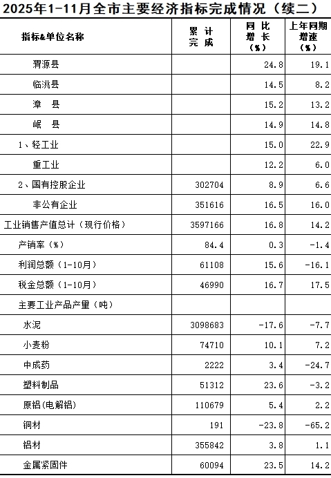 2025年1-11月定西统计月报