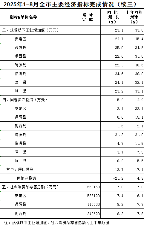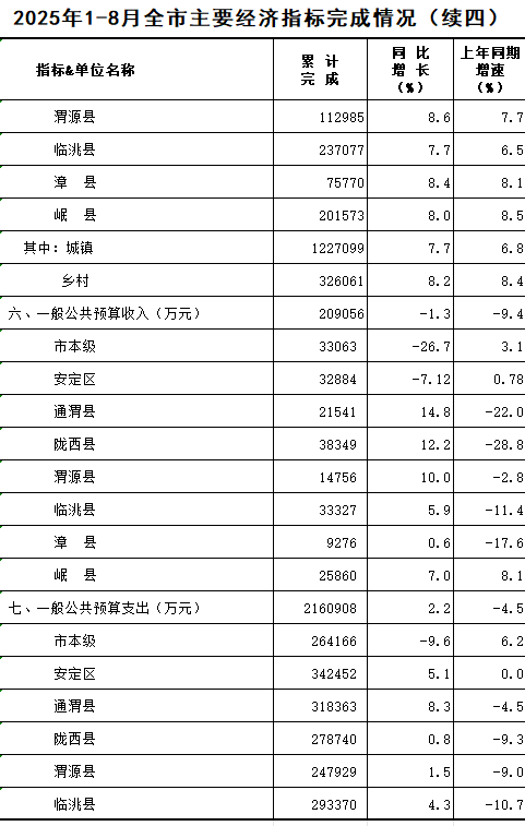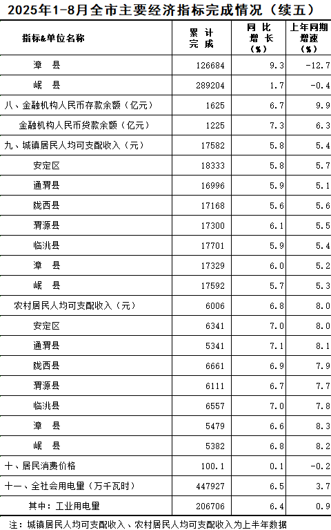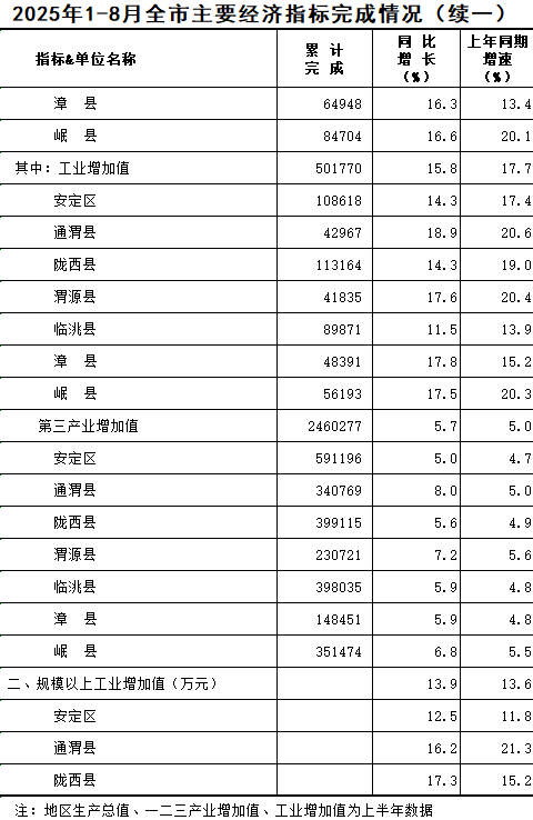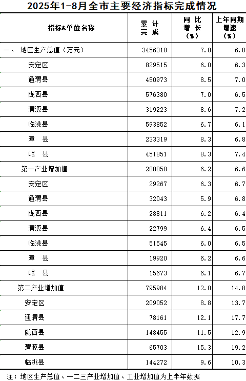 2025年1-8月定西统计月报