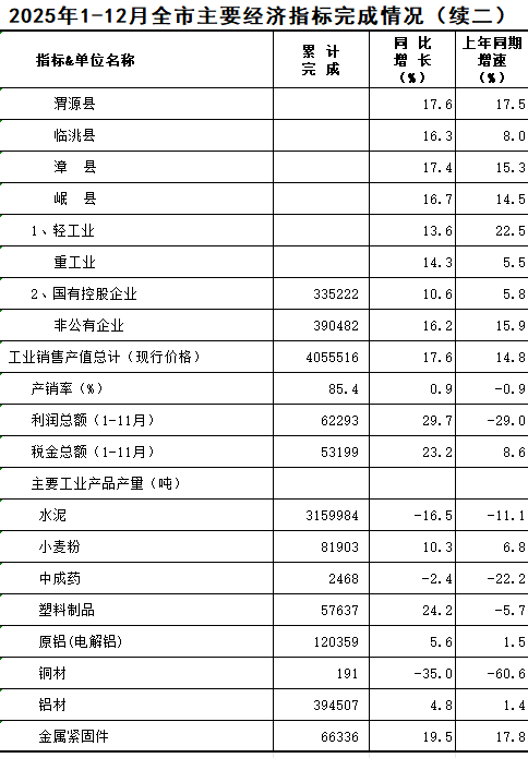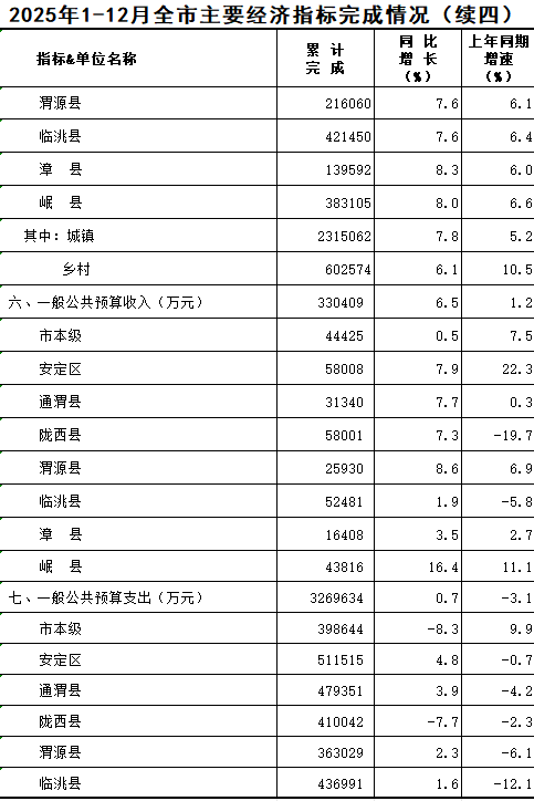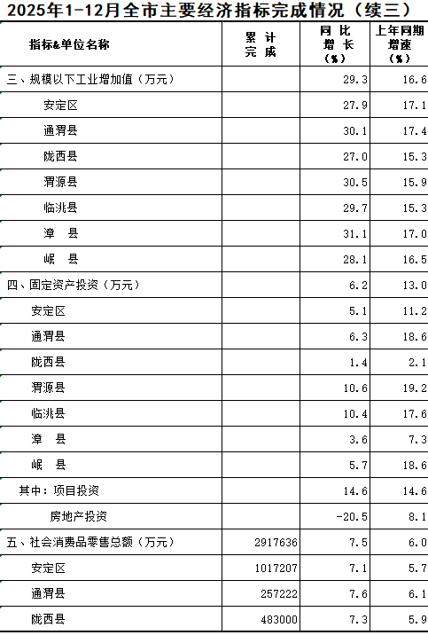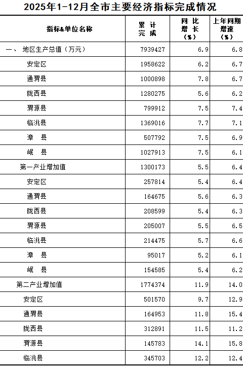 2025年1-12月定西统计月报